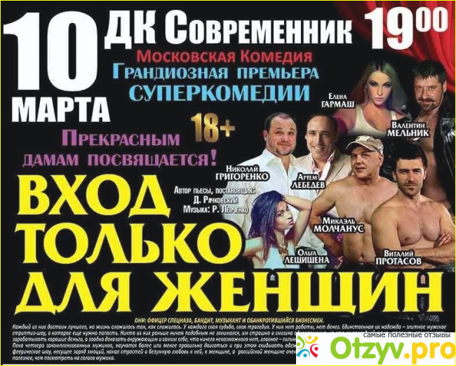 Так хочется баловать себя интересными событиями, только вот жизнь скупа на них, поэтому приходится самостоятельно организовывать себе досуг чтобы не завять от скуки. Увидев афишку спектакля с интересным названием я заинтересовалась. Созвонилась с подругой, та согласилась сходить. Мнений...