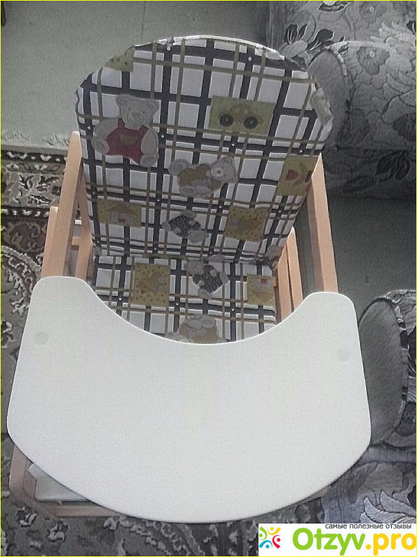 Недостатки: Тяжеловат,занимает много места, нет ремней безопасности, нет бортиков на маленькой столешнице, нет подножки