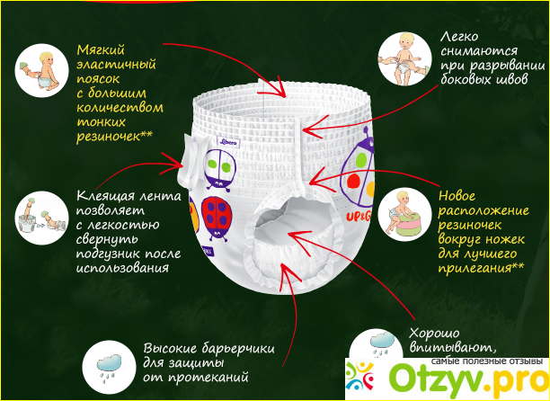Достоинства: Эластичный поясок, не перелавливает ножки и животик, хорошо впитывает влагу