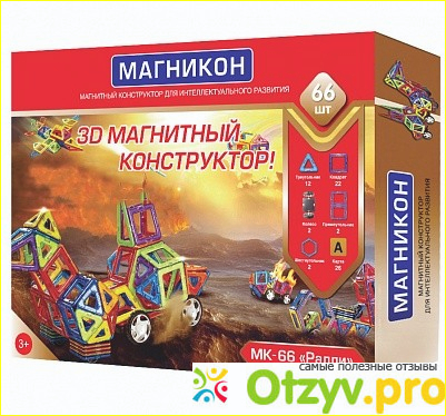 В итоге и мы купили магнитный конструктор, называется конструктор Магникон МК-66. В наборе 66 деталей: многоугольники, треугольники, квадраты, колесные базы и пластинки пластиковые с английским алфавитом.Много, да не очень) Когда начали строить, ваять из конструктора, стало понятно, что...