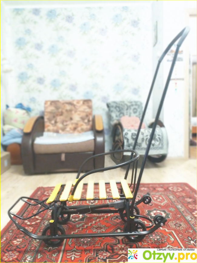 Рама покрыта чёрной краской на вид и ощупь достаточно качественнойДля передвижения по асфальту предусмотрены большие прорезиненные колёса (выдвигаются нажатием на педаль)Ручка-толкатель фиксируется в двух положениях: лицом к родителю и лицом по ходу...