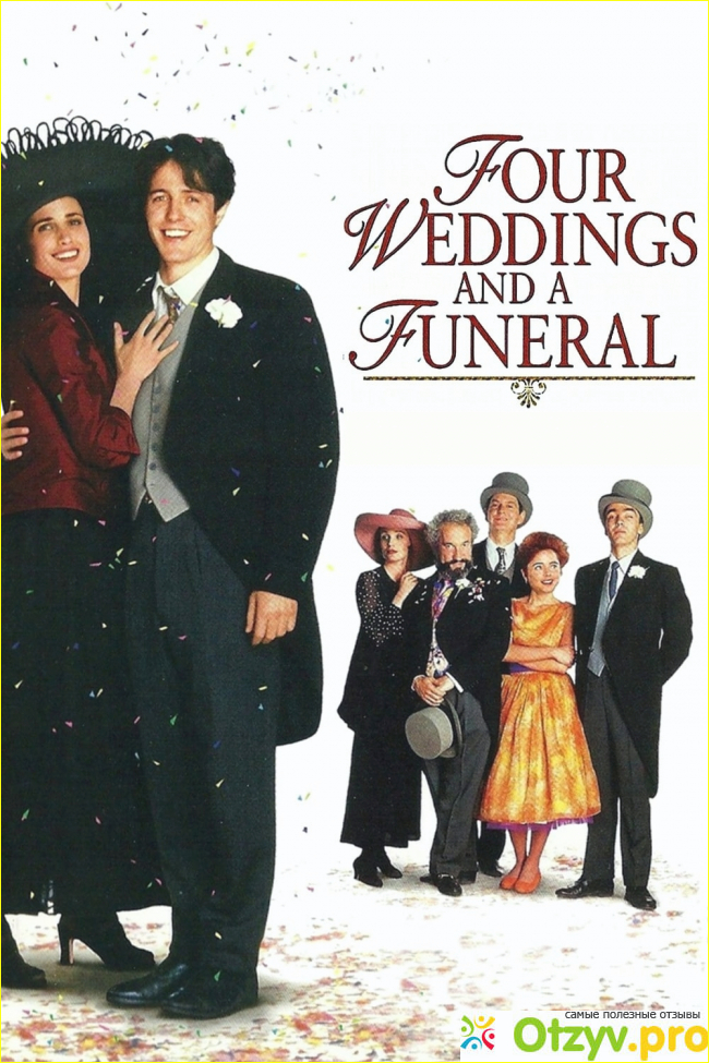 Мне кажется, что все видели эту милую романтическую комедию. Уйма уморительных шуток, которые спустя десятилетия так же свежи и уместны. В фильме снимались: Энди Макдауэлл, Хью Грант, Джон Ханна, Кристин Скотт Томас, Роуэн Аткинсон. История о Чарльзе вечно попадающем в нелепые ситуации....
