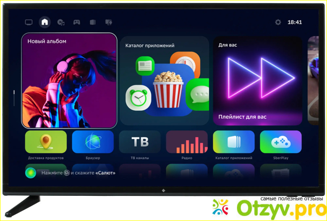 Достоинства: Хорошая цветопередача, гибкая настройка, возможность голосового поиска, магазин приложений