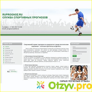 Да, могу сказать, что ruprognoz.ru - один из самых хороших сайтов прогнозирования. Тем кто любит, ну либо обожает смотреть футбол этот сервис понравится. Главное меню небольшое, да на сайте нереально запутаться. Все просто, доступно и подойдет новичкам. Обязательно советую...