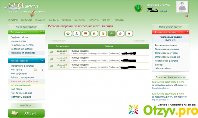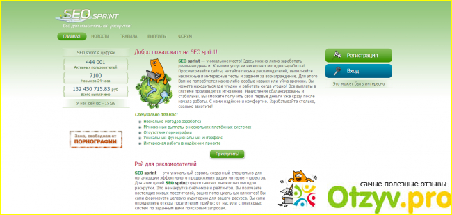 Seosprint – это первый сайт, на котором я заработал деньги. Заработать можно. Если не прилагать особых усилий, то будет выходить на мелкие расходы (оплата интернета, мобильной связи, мороженое). Сайт удобный, всё более-менее понятно.А теперь поговорим предметнее о размере заработка:...