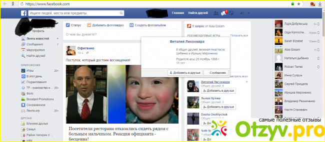 На Фейсбук я уже зарегистрирована несколько лет, начиная с 2011. Если честно, то начальный старый аккаунт уже давно посещала, а недавно создала новый. Из моих друзей на Фейсбуке нет вообще никого, даже немного странно, но они все сидят на Одноклассниках и ВКонтакте, а данная социальная...