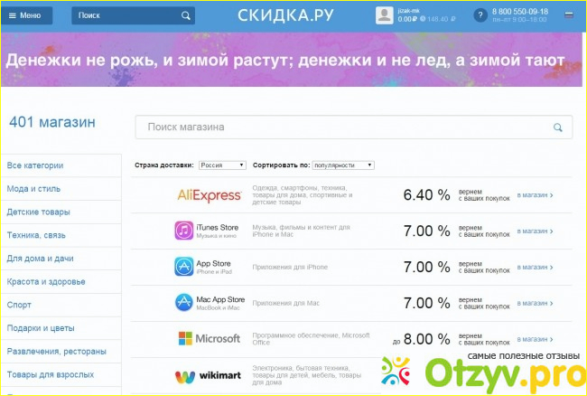 Достоинства: Простота использования, много магазинов в разных категориях, быстрый вывод средств, неплохой способ экономить