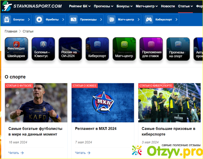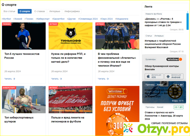 Достоинства: Рейтинг честный, обзоры, статьи о спорте, интервью, конкурсы