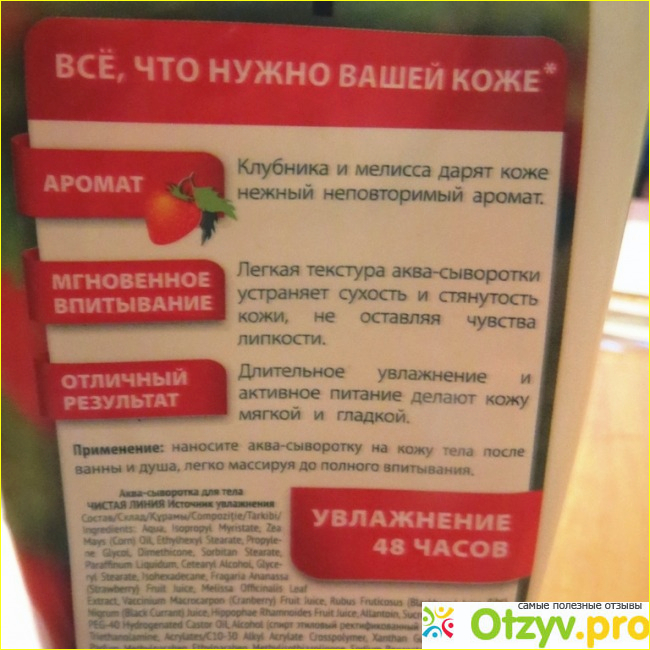 Отзывы на Аква-сыворотка для тела Чистая линия Источник увлажнения, сок клубники