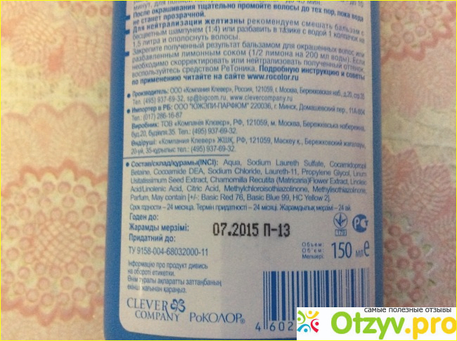 Отзывы на Оттеночный бальзам для волос Тоника РоКОЛОР