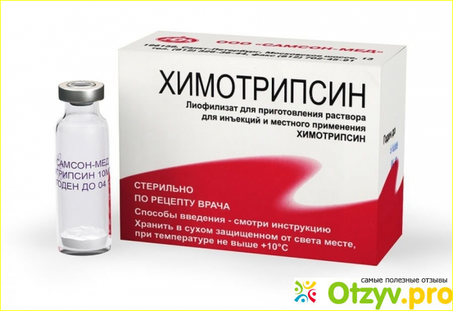 "Химотрипсин" - порошок для инъекций, разводится новокаином, вводится внутримышечно глубоко в верхний наружный квадрат ягодичной мышцы.При помощи "Химотрипсин" лечат: тромбофлибиты, парадантоз, гайморит, отит, ирит, придоциклит, трахеиты, бронхиты, экстракция каторакты и остеомелиты.Я...