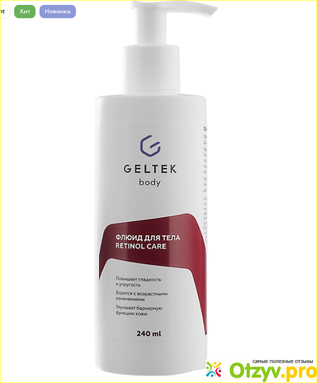Взяла такой крем для тела Geltek ориентируясь на состав. Потому что у этого средства он прямо отличный. Судите сами, здесь и набор целый витаминов, в том числе такой необходимый коже вит С, и липидный комплекс, который помогает коже оставаться увлажненной. Ну и кончено же ретинол, о...