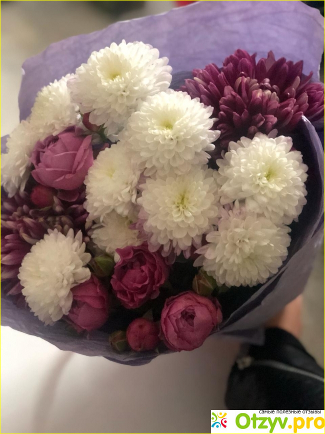 Достоинства: бесплатная доставка по РФ, большой выбор букетов, пунктуальность