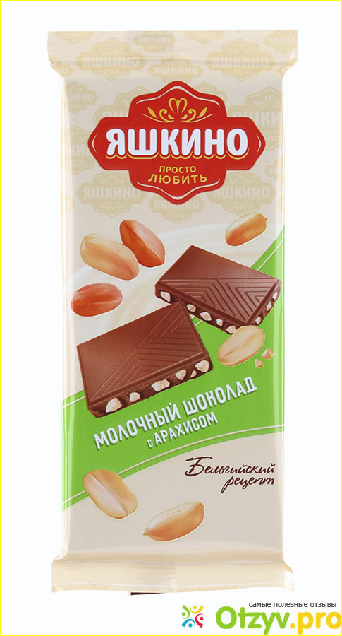Достоинства: Бельгийский молочный шоколад, много дроблённого обжаренного арахиса