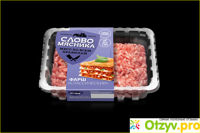 Попробовала свино-говяжий фарш под названием классический. Продается в герметичном пластиковом контейнере. Сформирован брикетом. Цвет бело-розовый, два вида мяса в составе, и сало тоже есть.Сырой фарш без запаха и без жидкости в лотке, мягкий, без следов заморозки. Делала из него что-то...