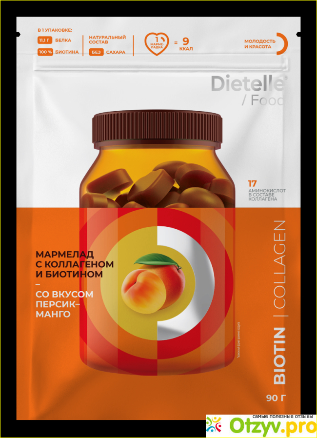 Отзывы на Dietelle Натуральный жевательный мармелад Без сахара со вкусом Персик-Манго