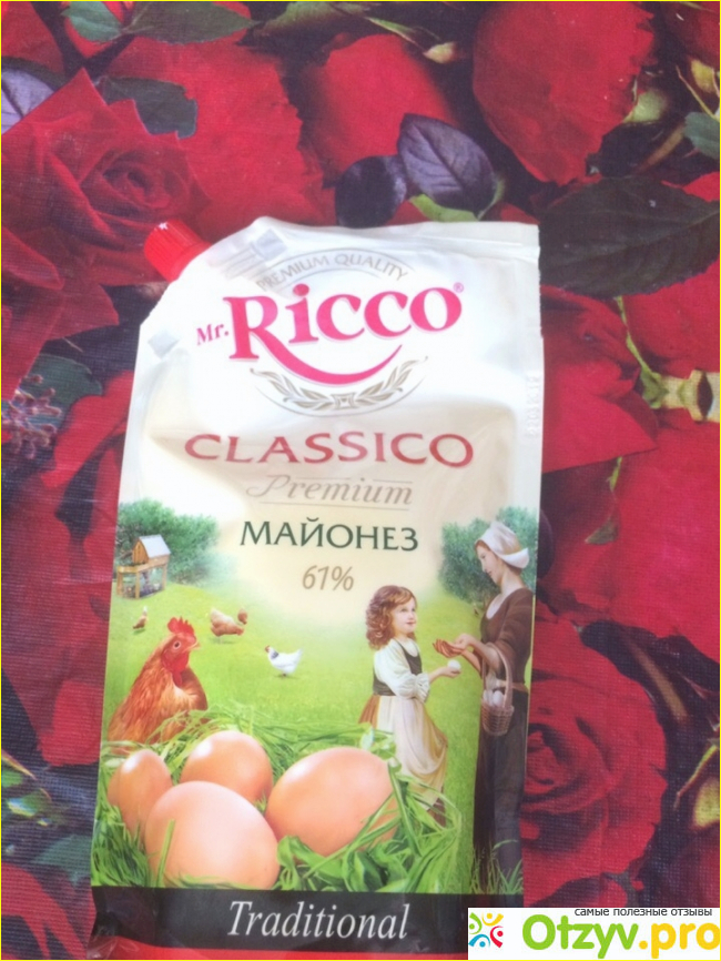 Майонез продается в мягкой упаковке с красной закручивающейся крышкой. Объем 390 мл. Цена 47 рублей.Массовая доля жира составляет 61%. Консистенция густая, цвет желтоватый. Приятный, нежный запах.Химии в составе нет.Имеет классический, насыщенный вкус, соленый, но в меру....