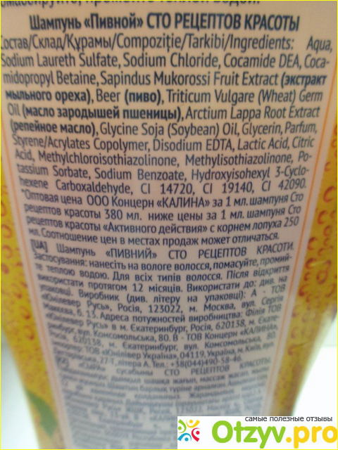 Отзывы на Шампунь Сто рецептов красоты (пивной) для всех типов волос