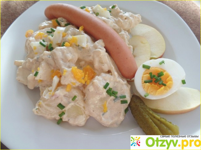 Немецкий картофельный салат.Ингредиенты :Отварной картофель , отварные яйца , яблоки ( нужно или кислые или кисло сладкие но что бы кислота во вкусе была на первом плане) , зеленый лук , йогурт или майонез ( или все вместе ), соль .Нарезаем картофель на очень крупные кубики ,...