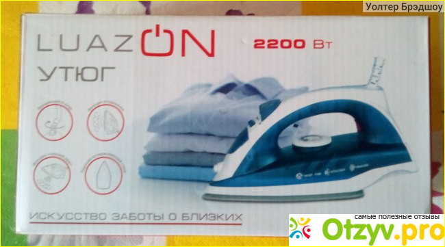 Утюг приобретался, в сетевом магазине электроники. Цена покупки - около 700 рублей. Упаковка - белая, картонная коробка. Нам попалась, модель голубого цвета. Боковые стороны, имеют красный фон. Мерный стаканчик, из прозрачного стал мутным.Хрупкий...