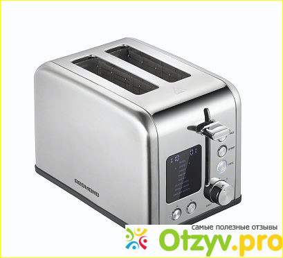 Достоинства: Недорогая стоимость, лаконичный дизайн, 6 степеней обжаривания, таймер обратного отсчета на дисплее, режим поджаривания одного тоста, можно поджарить разные виды хлеба, функции подогрева и разморозки