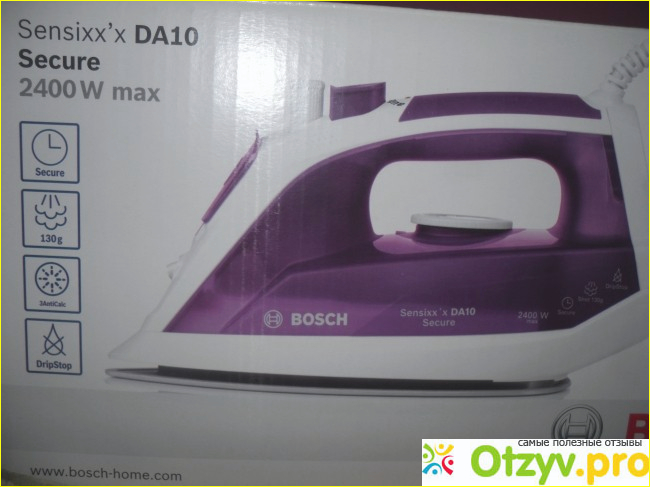 Купила утюг Bosch год назад в интернет-магазине. Красивый, стильный утюг с хорошими характеристиками. Вот основные характеристики: мощность 2400W, паровой удар 130 г/мин., система автоматического отключения SecureAuto Off (отключается после 30 секунд без движения подошвой вниз, либо на...