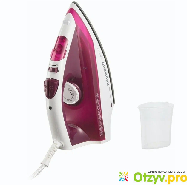 Достоинства: мощный пар, удобная ручка, быстро нагревается, длинный шнур