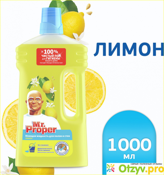 Отзыв на средство для мытья полов и стен Mr. Proper Лимон, 1 л.Всем привет! Хочу поделиться своими впечатлениями от использования данного средства для мытья полов и стен. Я уже давно пользуюсь этим средством для мытья полов, мне очень нравится, что данное средство хорошо очищает полы,...