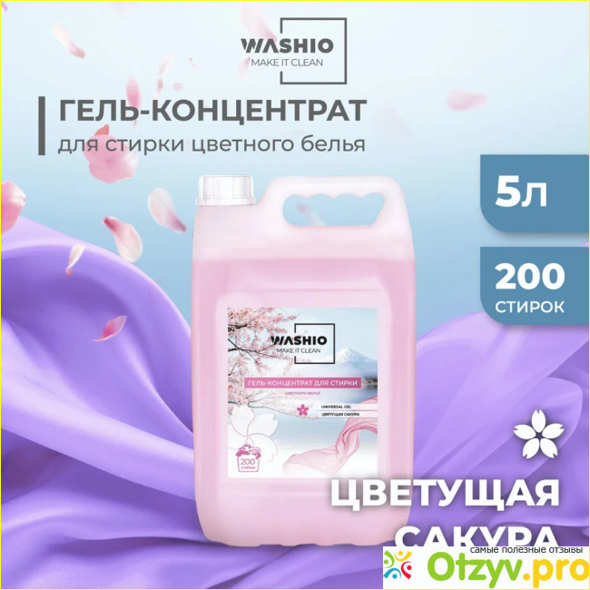 Нашла на WB классный гель для стирки Washio. Недорого стоит, 5 литров сразу купила и голова не болит, чем стирать на много месяцев вперед. Взяла с запахом цветущая сакура, нежно розового цвета и аромат приятный, легкий, ненавязчивый. Сразу как нюхаешь из бутыля сильнее пахнет, а на ткани...