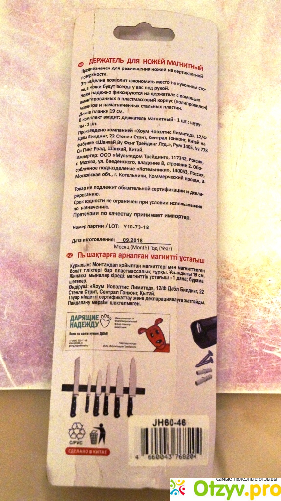 Отзывы на Магнитный держатель для ножей Мультидом Трейдинг