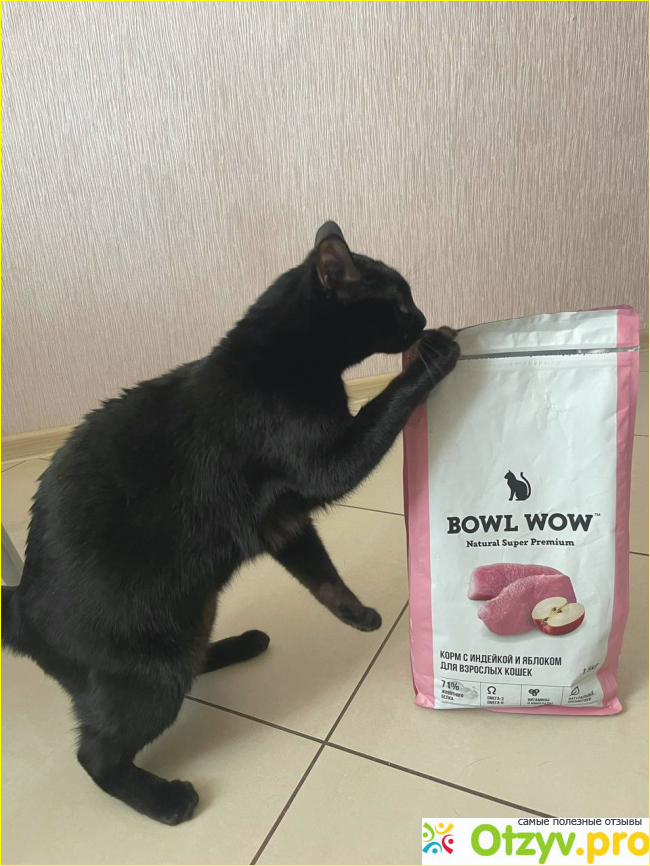 Фух, могу сказать, что довольна, что перевела своего полосатика на этот корм. Сначала боялась, что яблоко к индейке ему не пойдет, но трескает так, что за ушами трещит. К слову, он у меня мущщина с избыточной массой тела, и ему было бы недурно похудеть. В сети пишут, что на боул вау...