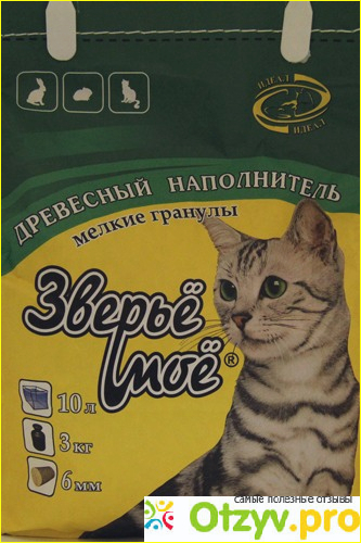 Всегда беру "Зверье мое" объемом 10 литров, мелкие гранулы для клетки крыске.Хоть и говорят, что этот наполнитель для кошек, а грызунам не походит - меня все устраивает. Свежий аромат древесины, хорошо собирает и удерживает неприятные миазмы крысиных испражнений. Не сильно пылит, из...