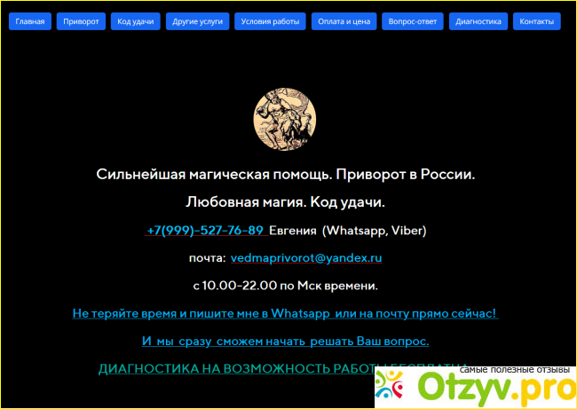 Она чудесный человек и сильная ведьма! С радостью, могу поделится ее контактами, можно послать сообщение в whatsapp +7 962 382-67-34