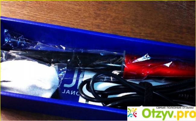Итак, расскажу о ней подробнее: плойка с терморегулятором, оснащена термостойким наконечником, титаново-турмалиновым покрытием (что уменьшает статику, придает блеск локонам + волос легко скользит по рабочей поверхности плойки и не прилипает), раб. темп: 120 - 200 градусов, всего 5 режимов, шнур длинный, вращается, есть петелька. Качество сборки отличное. Вот собственно основные моменты.