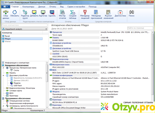 Программу поставил на свой админский комп, просканил сеть, настроил сбор информации. Все заняло пару часов. В результате у меня был список всего железа и ПО компании, который я получил автоматически, не поднимая пятую точку со стула. Затем настроил: