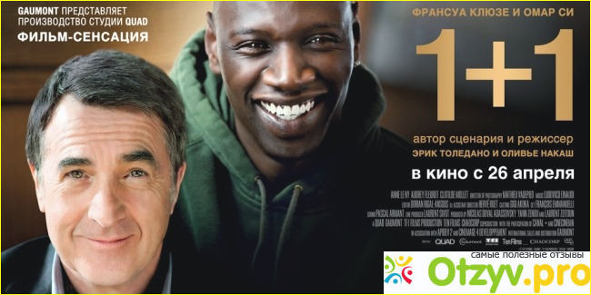 Здравствуйте, уважаемые читатели моего отзыва! Я желаю всем доброго времени суток. Сегодня я поделюсь своими впечатлениями, которые я получила от просмотра художественного кинофильма под названием "1+1. Неприкасаемые".