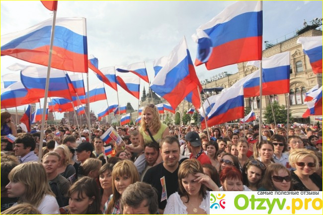 Россия - как много в этом слове. Россия - одно из самых больших государств. Каждый регион, каждая область, каждый город, каждая деревня - это все она, наша большая страна Россия матушка. Каждый живущий в нашей стране, вкладывает в нее всю свою душу, все свои силы, чтобы наша страна развивалась, строилась, росла. Мы любим нашу страну, мы гордимся ею. Нам есть что показать иностранным гражданам, которые полюбили нашу страну, полюбили наш народ, за гостеприимство, за доброту. Наш русский народ, народ простой, но в тоже время непобедимый. Россияне как всем известно любят погулять, мы любим праздники. Вся страна гуляет в этот день, празднует праздник, веселиться, танцует. Как одна большая семья.
