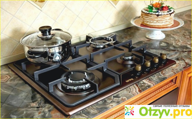 Легко устанавливается на столешницу, безопасный, надежный, красивый. Его дизайн может вписаться в любой интерьер кухни, чугунные решетки сверху покрыты черной эмалью.
