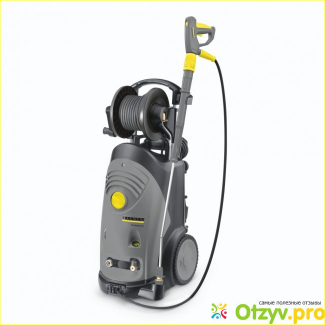 В общем, никакой проблемы с эксплуатацией этой модели, наши друзья не имели. Принцип работы мойки- электрическая и она имеет такую систему защиты, как автоматическое отключение. Увидели мы и то, что шланг был размером с 10 метров и имелась выдвижная ручка для переноски. Мы сами попробовали с ней работать и весит она кстати 72 килограмма, но наличие на ней транспортировочных колёс облегчает её движение, поэтому нам её легко было передвигать. Сетевой шнур тоже имелся и он был размером с 5 метров.