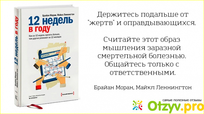 Эта книга выпускается издательством, которое специализируется на выпуске деловой литературы. Главная идея авторов, показать читателям, что идея новогодних обещаний не работает. ДА, мы вдохновляемся, придумываем каких высот достигнем. Но, все это откладывается, сначала до следующей недели, потом до нового месяца. Продолжение типично. Вместо этого предлагается взять более короткий и ощутимый в обозримом будущем промежуток времени диапазоном в три месяца. Зная, что по сути времени совсем не много, приходится быть проактивными для того, чтобы выполнить все задачи.