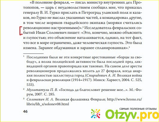 История такая наука, где все завязано на источники. С ними у Николая Старикова ситуация такая - собрала кучу книжек из магазинах от сомнительных полузабытых авторов (например, писатель-антисемит Олег Платонов) до мемуаров политиков-неудачников вроде Троцкого, Милюкова и Керенского и еще Ивана Солоневича. Причем последнего он как-то обтекаемо назвал "исследователь февральских событий".
