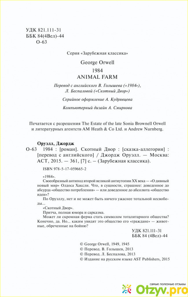 На изображении видно, краткая информация по сборнику знаменитого писателя Джорджа Оруэллпод "1984. Скотный двор" под редакцией издательства АСТ (смотрите на фотографию расположенную снизу):