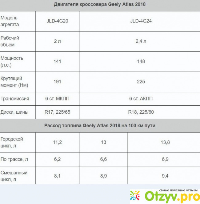 Автомобиль имеет полный привод, который прекрасно справляется с поставленными задачами. Машина в зависимости от комплектации поставляется с двумя двигателями один1 рабочим объёмом 2 л. и мощностью 141 л. с., а второй на 2.4 л. И мощностью 148 л. с. Оба двигателя являются атмосферными и на больших скоростях именного не хватает мощности. Geely Atlas 2018 года обладает независимой передней подвеской MacPherson, сзади устанавливается полузависимая, многорычажная имеющая телескопический амортизатор и поперечный стабилизатор.
