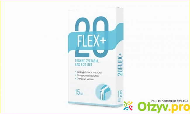 Выпускается 20Флекс+ в белой упаковке с большой цифрой 20 и голубым шлейфом с надписью Флекс+ на английском. Внутри 15 ампул средства. Принимают их по одной раз в сутки. Продолжительность лечения – месяц.