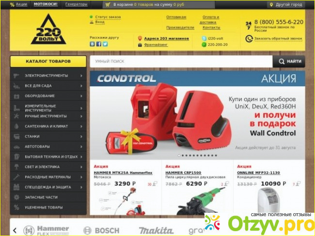 Здесь. Это интернет-магазин 220volt.ru. Здесь есть почти все. Сюда нельзя заходить просто посмотреть. Без цели что-то купить. Здесь все сверкает новизной, лайбами известных фирм, разнообразием. Такое обилие товаров, необходимых специалисту, не даст воздержаться от покупки. В основном это электрические товары, о чем красноречиво говорит его название 220 вольт – это действующее напряжение большинства стран мира. Именно эти волшебные 220 вольт приводят в движение аппараты, приборы приспособления, которые красуются на многочисленных витринах магазина. Чтобы приобрести распространенную дрель нужно дома перебрать технические характеристики необходимой вам дрели, производителя и ее стоимость. Если вы этого не сделаете, будете ходить целый день по магазину и уйдете. Так ничего не выбрав. Разве можно в березовой роще выбрать самую красивую березу? Так и здесь: все красиво, все брендовое и у всех приемлемая цена.