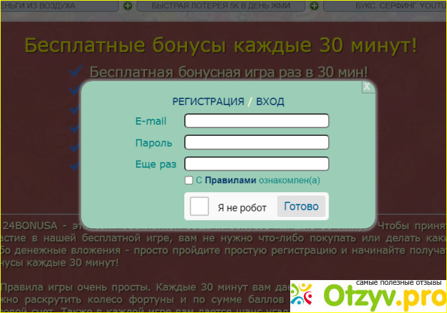24bonusa дает шанс выиграть без вложений, просто сидя дома за компьютером или смартфоном. Бесплатная лотерея - это отличный способ развлечься, расслабиться и, возможно, повезет и выиграете приличную сумму. Кто знает, может быть ваша удача уже ждет вас на 24bonusa! Зарегистрируйтесь сейчас и начните получать бонусы каждые полчаса. Это бесплатно, легко и увлекательно! За несколько простых шагов вы можете стать участником бесплатной лотереи. Почему бы не попробовать? Ведь вы ничего не теряете, зато можете выиграть. Переживайте за свои деньги и сомнительные покупки, а пусть удача будет на вашей стороне! Возможно, именно вы станете следующим счастливчиком, выигравшим в бесплатной лотерее. Заинтригованы? А теперь давайте реальность…