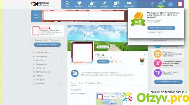 Что интересно, боты обладают некоторым интеллектом, в итоге складывается впечатление, будто на самом деле общаешься с настоящим человеком. Про основной функционал я вообще молчу - из бесплатного только просмотр, да ограничение на список контактов в сутки (то есть за день можно написать только двадцати контактам). Постоянные всплывающие окна и предложения заплатить денег, чтобы поднять анкету на самое первое место, сделать себе V.I.P. - статус, чтобы снять все ограничения, пополнить баланс. Порой даже бывает, что пишешь кому то, не смотря в монитор, пишешь много и с усилием, целую поэму, а потом только хочешь отправить, а тут бац - оказывается на весь экран выскочило уведомление с предложением поднять страницу или пополнить баланс. Громко матерясь, начинаешь закрывать весь этот балаган и писать текст снова, на этот раз поглядывая на монитор. А уж про проблемы с отправкой я вообще молчу. В общем, начинаю искать в поиске нормальные ресурсы по знакомствам, делаю соответствующий запрос и попадаю на 24open.ru. Яркий дизайн на главной, вроде без особо навязчивой рекламы. Регистрируюсь. Начинаю просматривать анкеты. Что интересно, ВООБЩЕ никакого предложения услуг. Боты практически отсутствуют. Да, сайт не так густо населен, как прочие мамбы, но зато отсеян лишний контингент. Само собой, платные услуги тоже присутствуют, однако ограничения на написание сообщений отсутствуют как таковые. Но об этом ниже...