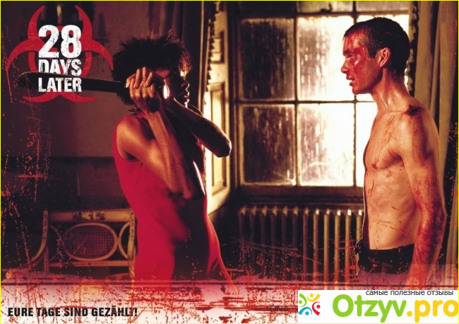 Но этими штампами зрителей будут пугать только поначалу! Потом в действие вступят обычные, не зараженные люди. И неизвестно, что будет хуже. Такого, что зрителям предстоит увидеть в фильме «28 дней спустя» не было еще нигде. Фильм нельзя назвать просто «страшилкой про зомби», это скорее психологический триллер. Нельзя этот фильм ставить в один ряд с другими на подобную тему, он выше, так как лишен голливудских штампов.
