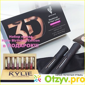 «Набор косметики с помадами и тушью три Д пожалуй лучшее, что я купила за последний год. Теперь мой макияж всегда очень стойкий и при этом яркий и насыщенный. Помада на губы ложится идеально, и мои короткие ресницы удлиняются раза в три», - Катерина.