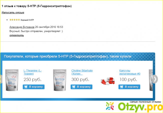 На вид обыкновенный сайт, торгующий разной продукцией, в основном это биологически активные добавки. Как выяснилось 5-HTP (5-Гидрокситриптофан) – это, по сути, тоже биологически активная добавка, только с более заметным действием.